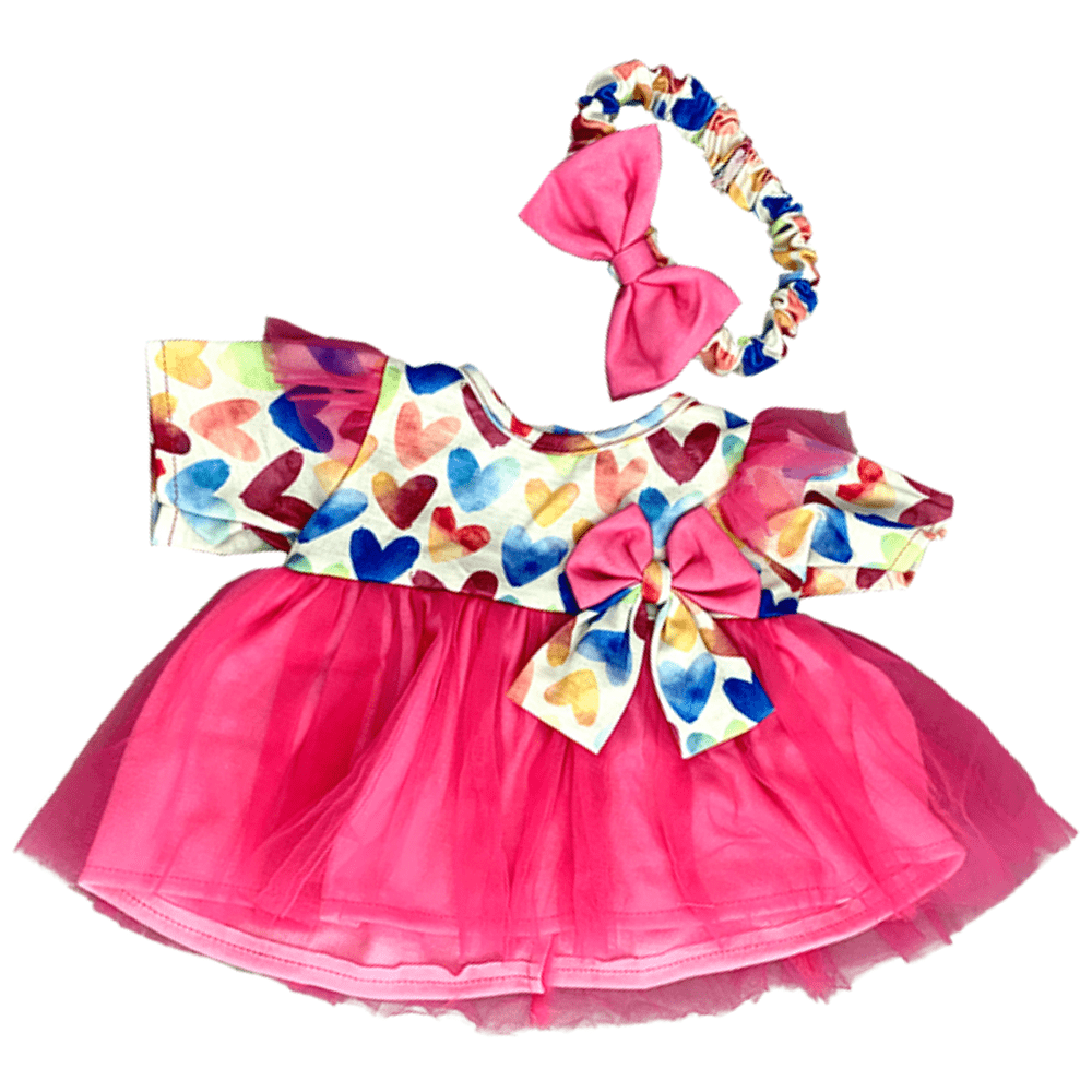 8 inch Pink Heart Dress with Headband - Teddy Bear Clothes - SPECIAL PRICE