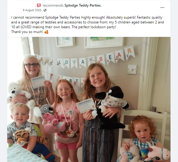 Let other customers know about your experience with Splodge Teddy Parties by leaving us a review at Leave a review here